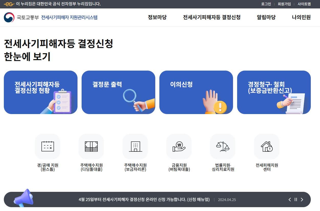 - 전세사기 피해자 지원시스템 : jeonse.kgeop.go.kr