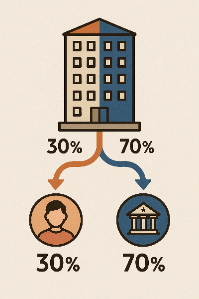 예를 들어, 10억 원 아파트에 대해 1.5억 원만 구매자가 투자하고 나머지를 정부가 지분으로 보유하면, 이후 시세 상승 시 양측이 각각의 비율로 수익을 나눕니다.