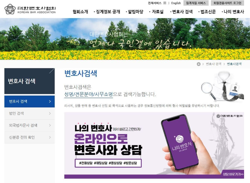 - 대한변협 변호사 검색 서비스 이용 (바로가기)