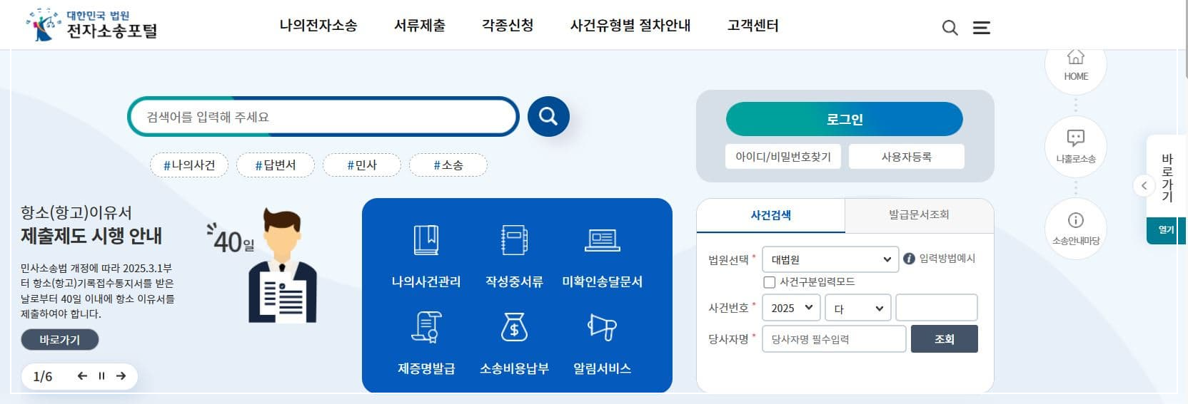 A. 대한민국 법원 전자소송 홈페이지에서 진행 가능합니다.