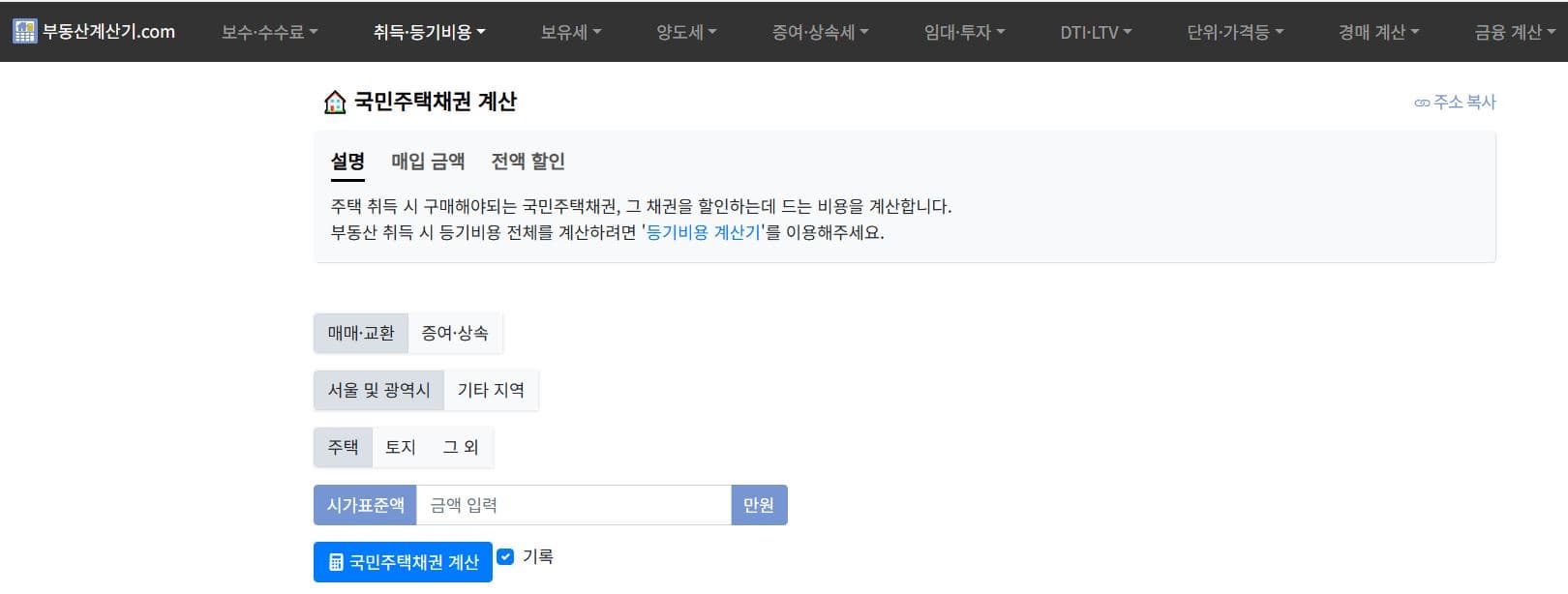 동방채권이나 부동산계산기 웹사이트 등에서 편리하게 사용할 수 있습니다.