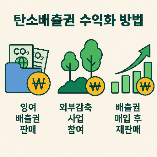 - 감축 후 잉여 배출권을 판매하여 수익 창출