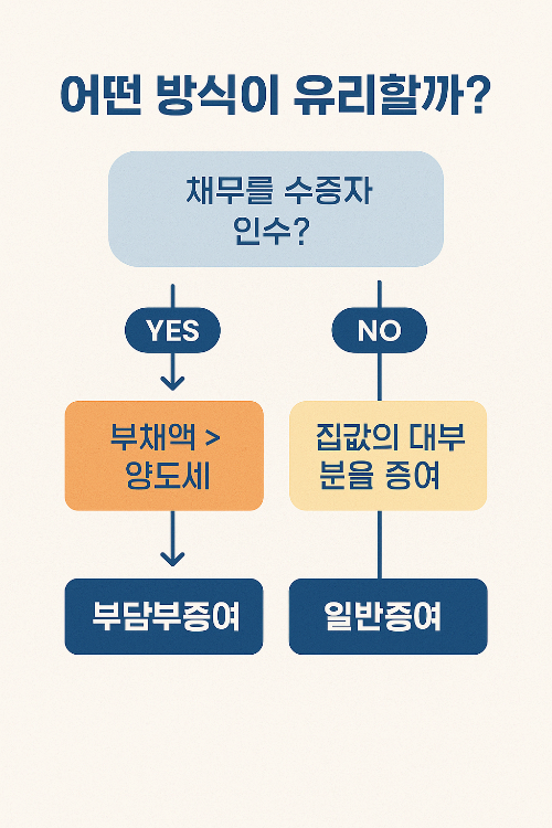 채무를 포함한 증여의 경우, '누가 어떤 세금을 얼마나 내야 하는지'에 따라 절세 효과가 극명하게 갈립니다.
