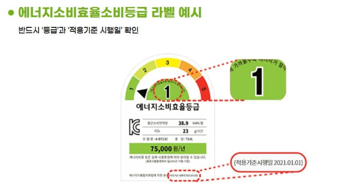 - 에너지소비효율 1등급 또는 최상위 효율 기준 충족