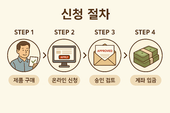 특히 주의할 점! 제품만 구매할 때, 구매 시점과 신청 시점이 모두 정확해야 하며, 반드시 증빙 자료를 제출해야 환급받을 수 있습니다.