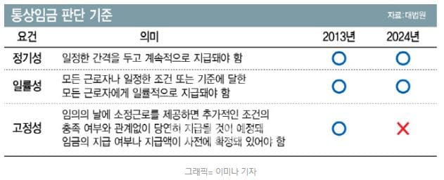 단, 이번 대법원 판결로 조건부 정기상여금은 통상임금 포함